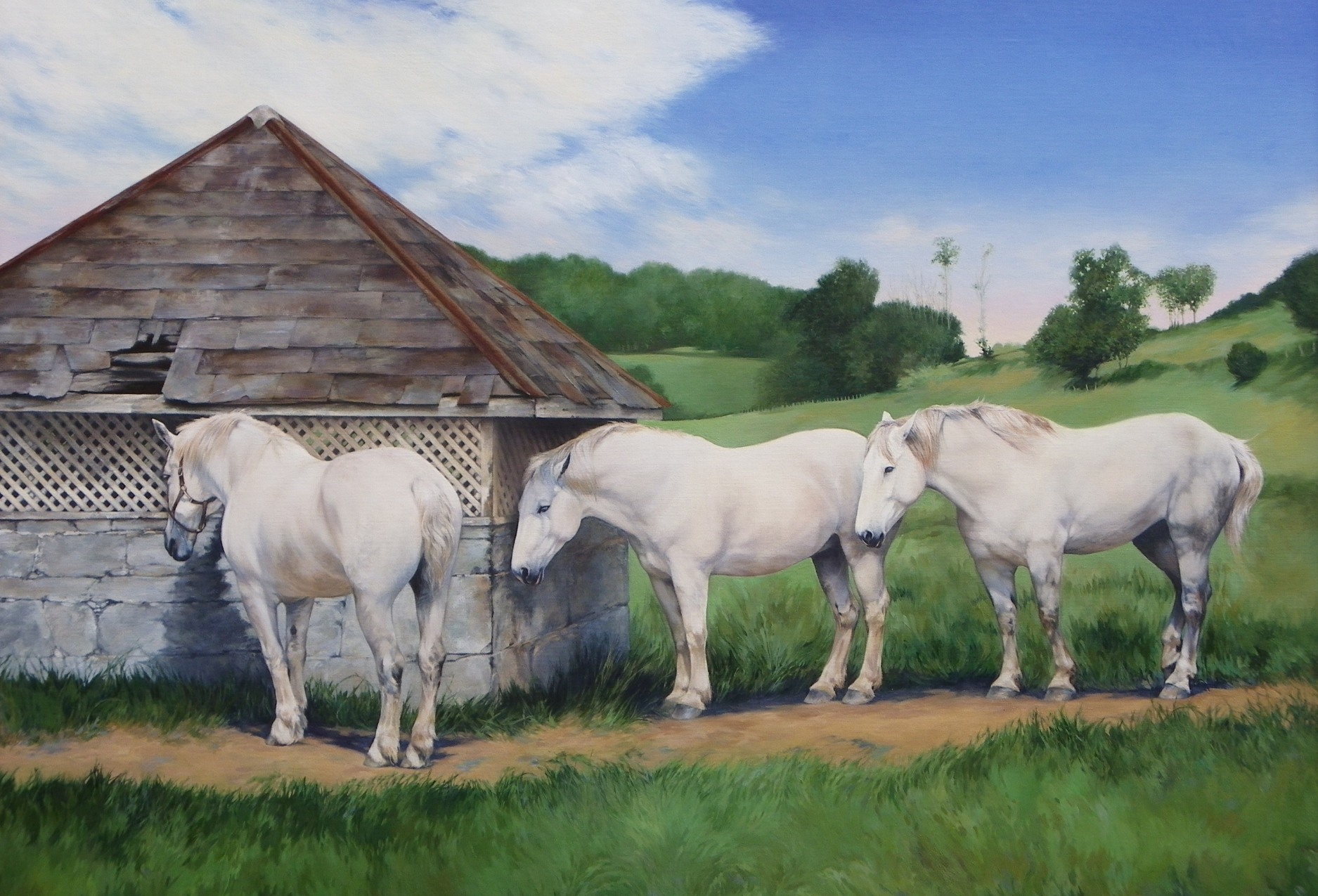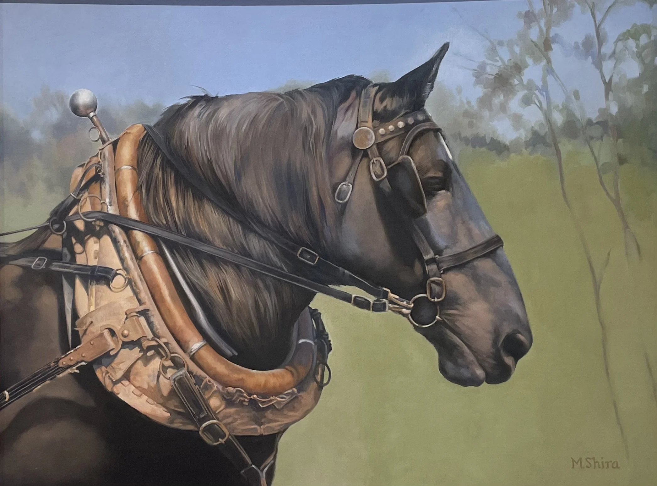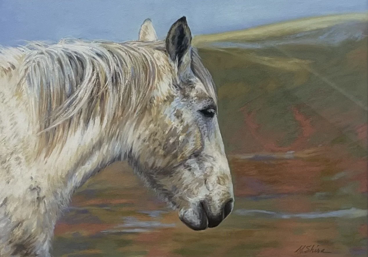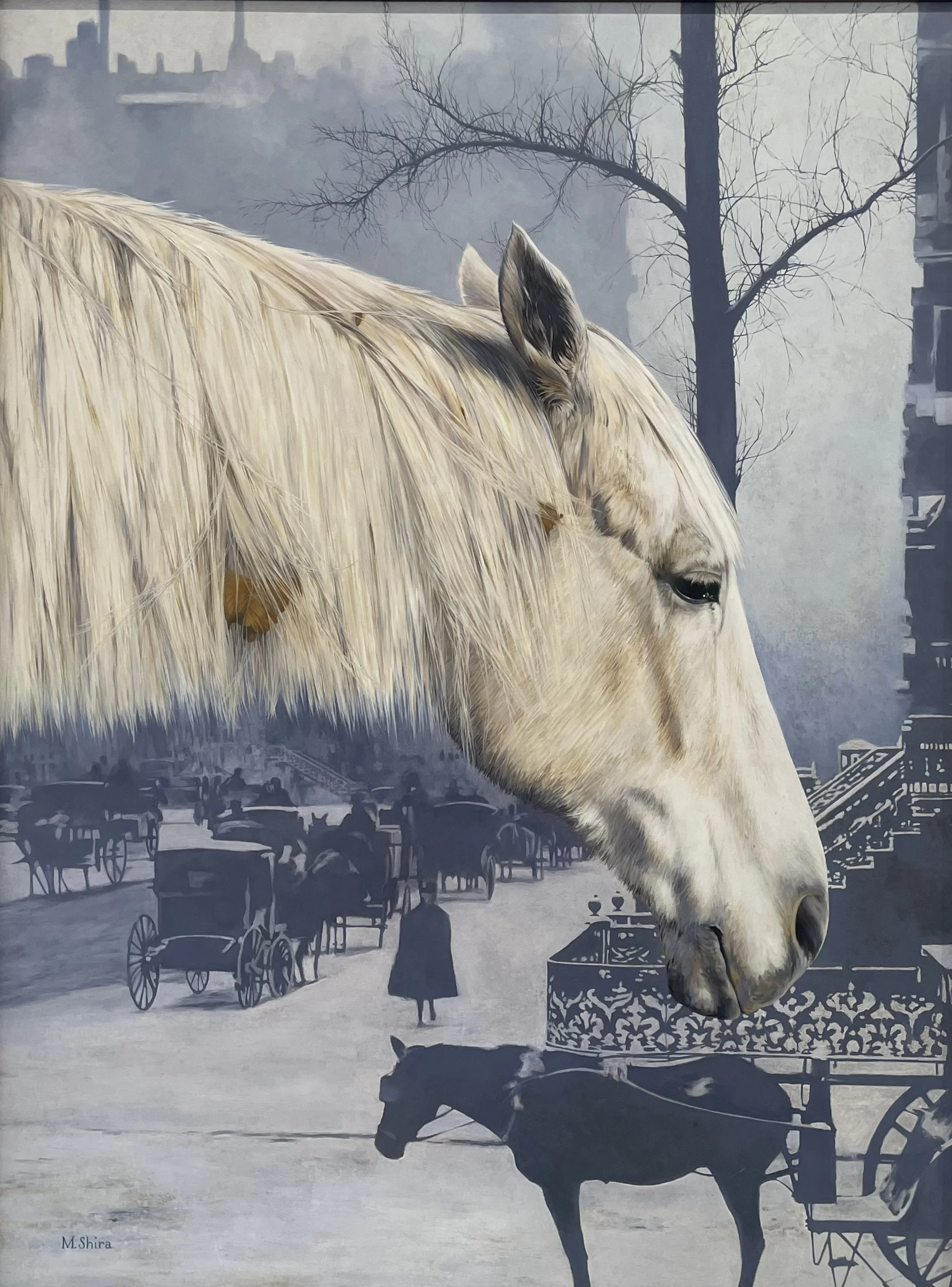 Mary Shira began working as a professional artist, taking commissions while still in graduate school, and spent four years working at Belmont Park studying horse anatomy and confirmation. In her painting today she explores the place of nature in the modern world.